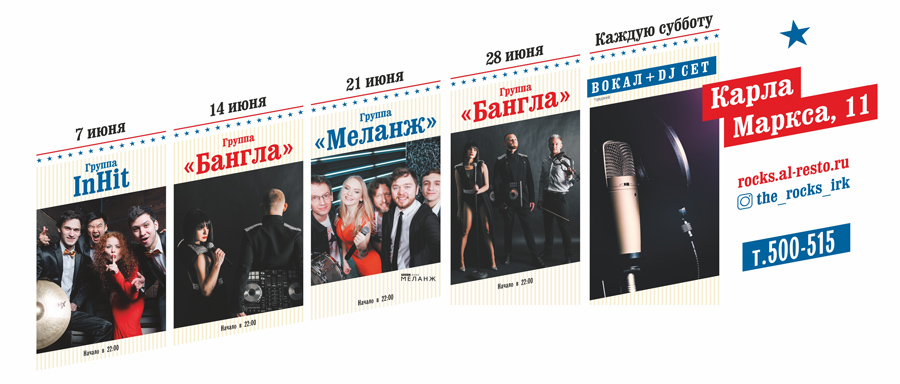 Джаз, кантри или регги, эстрадные хиты и рок-н-ролл! Заказав столик, в The Rocks, можно попасть не только в историю, но и на концерт любимой группы или самый драйвовый джем-сейшн. Следите за афишей!