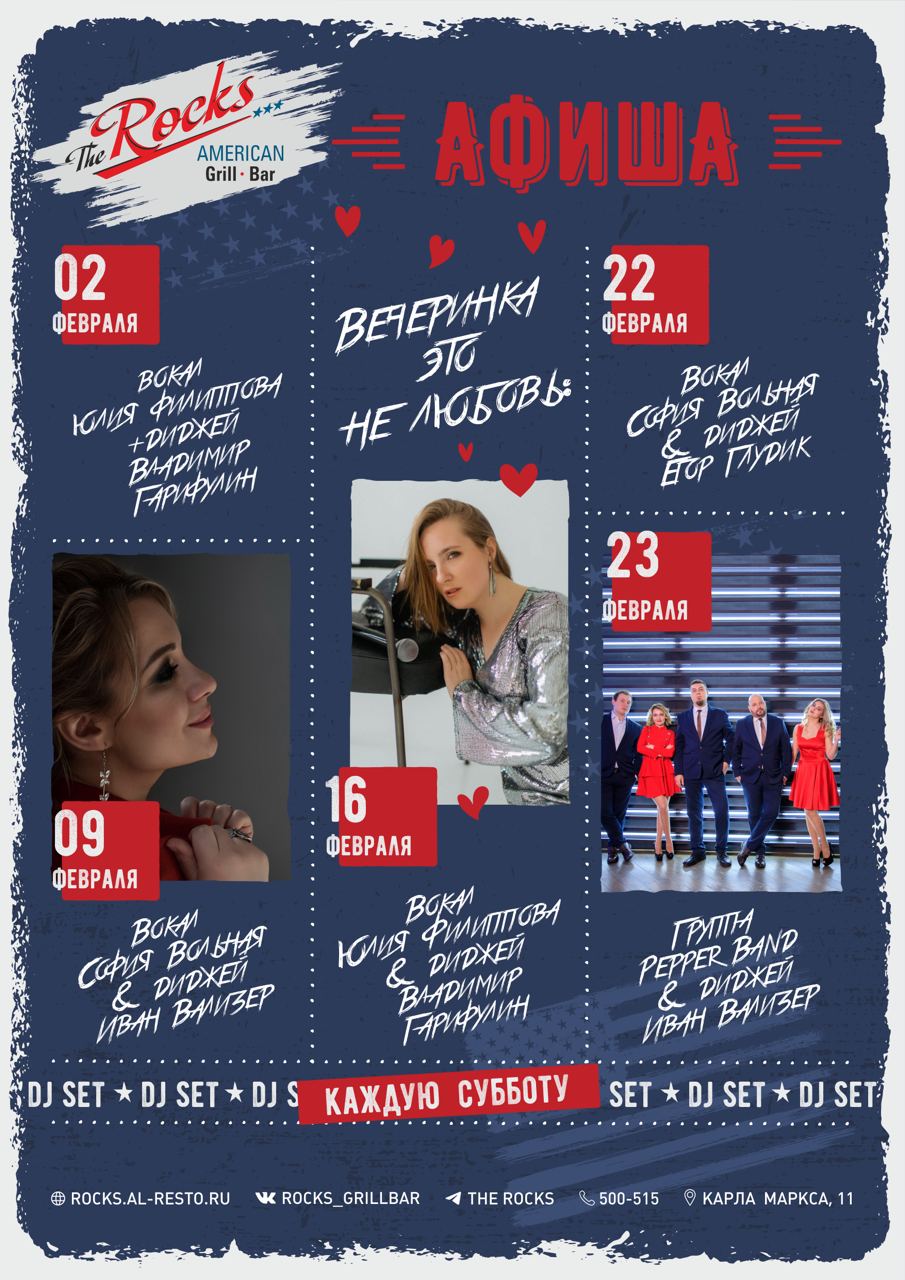 Каждую пятницу и субботу концерты. Вход свободный.